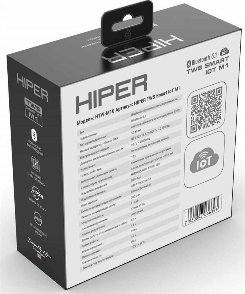 Наушники HIPER TWS Smart IoT M1 HTW-M10