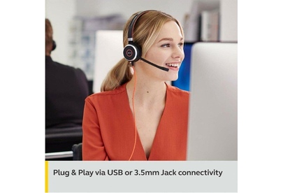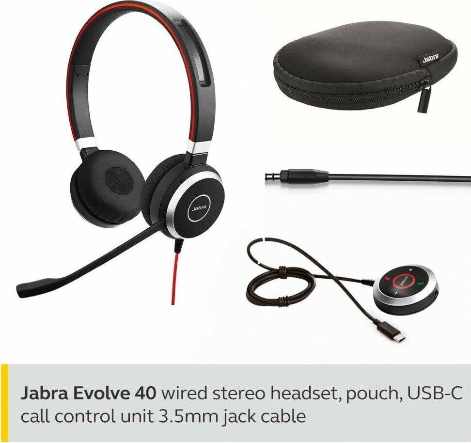 Наушники JABRA Гарнитура Evolve 40 MS, для контактных центров, накладные, проводные USB/3,5 мм, черный [6399-