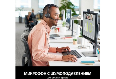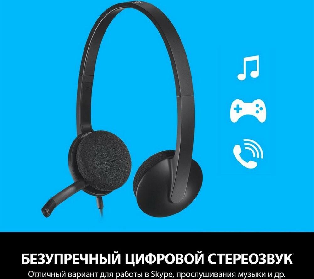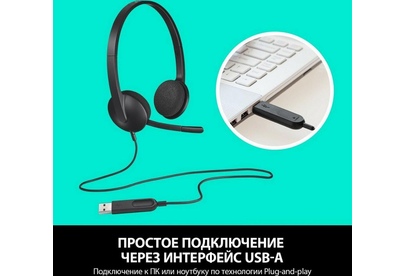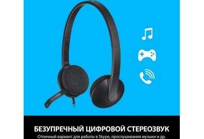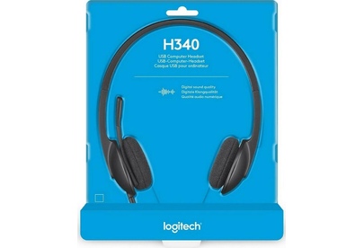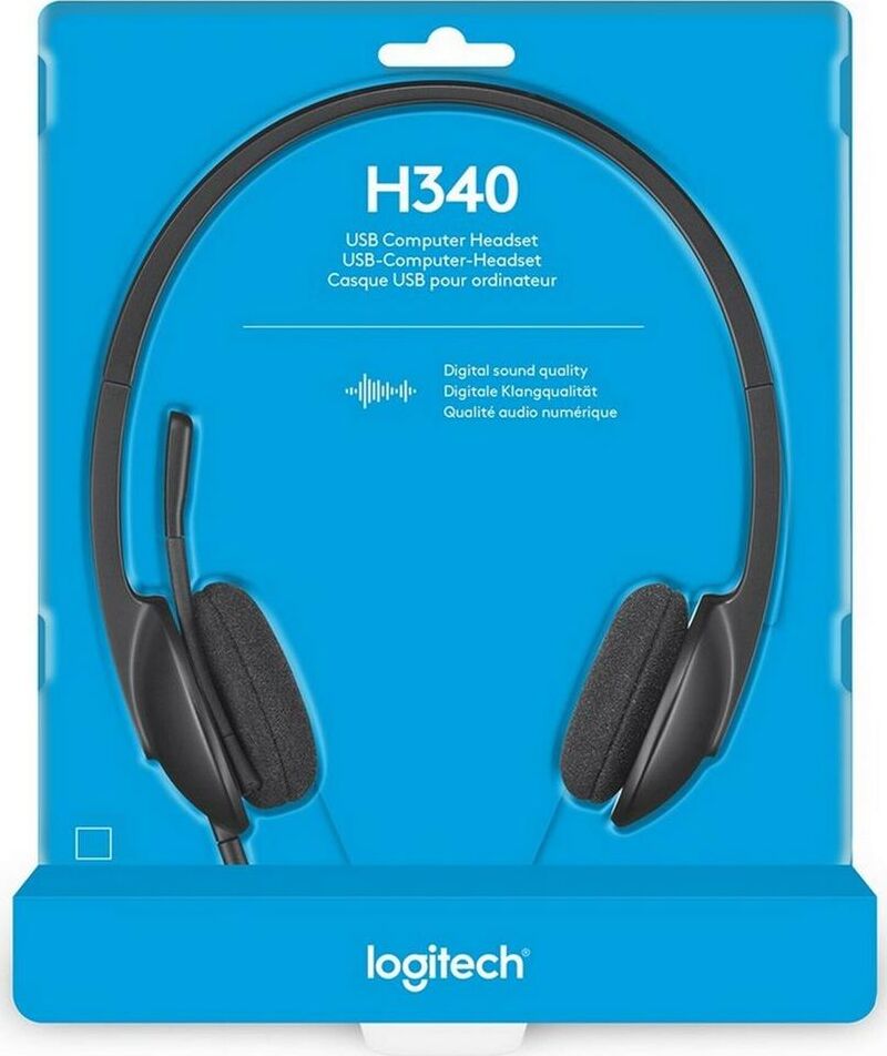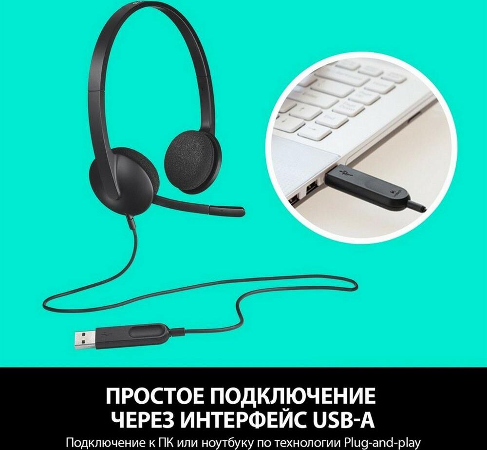 Наушники LOGITECH Гарнитура H340, для контактных центров, накладные, проводные, черный [981-000475]
