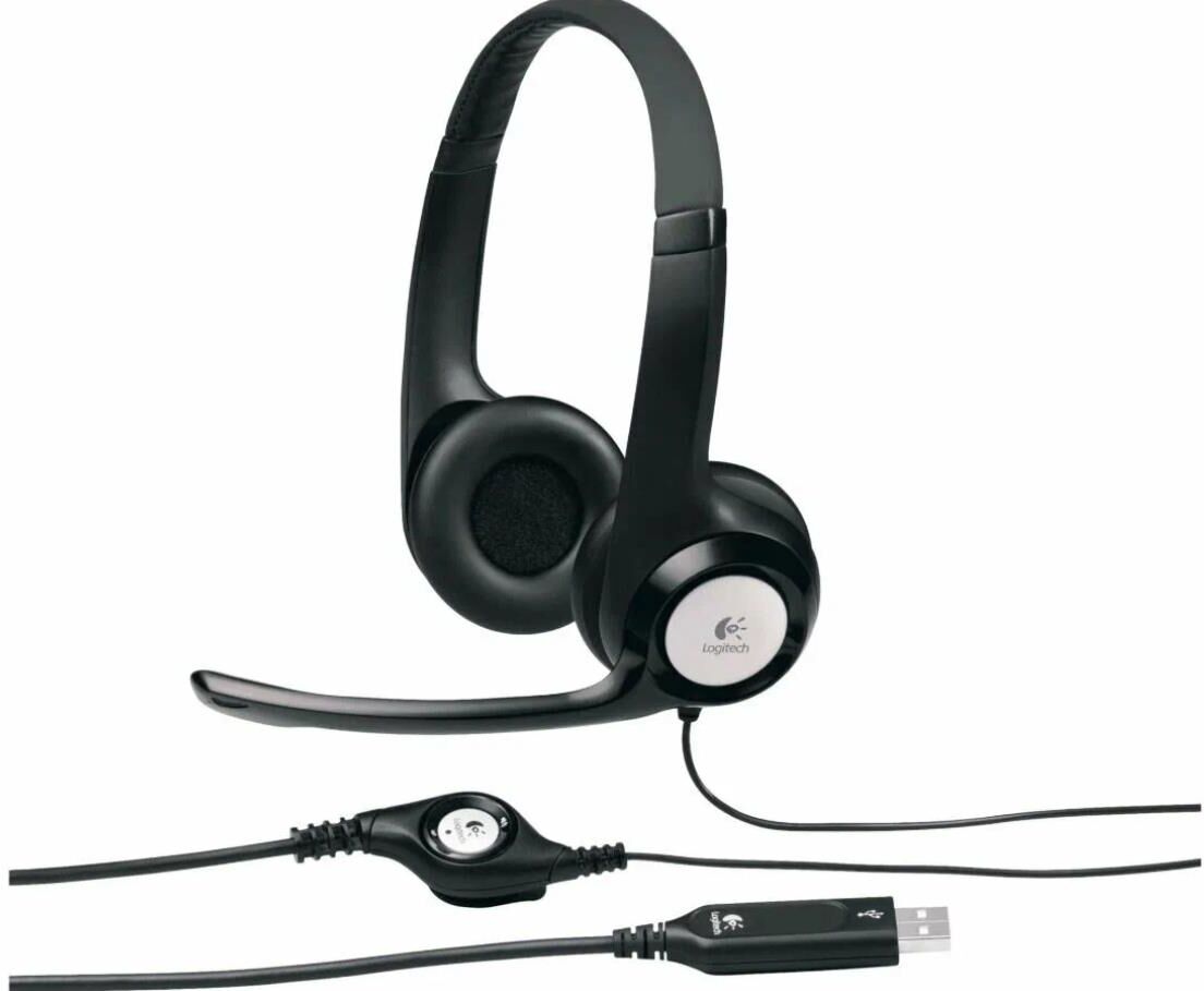 Наушники LOGITECH Гарнитура H390, для контактных центров, накладные, проводные, черный [981-001578]