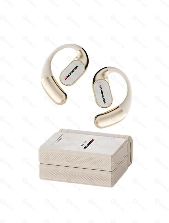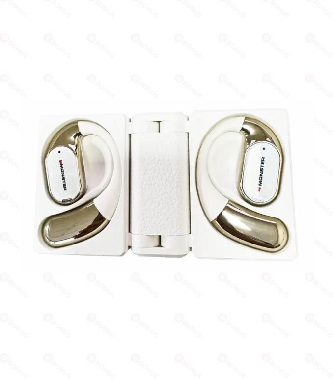 Наушники беспроводные OWS MONSTER Open Ear AC530 (MH22248),белые. Удобные и лёгкие открытые наушники с костной проводимостью, громкий и детальный звук, надёжная фиксация на ухе, премиальный дизайн кейса (форм фактор книжки)/bluetooth v 5.4/chipset n/a/battery Earphones: 50mAh, Charging case 300mAh/ water resistance IPX5 for earbuds, not waterproof for charging case/play time (50% volume) 7h