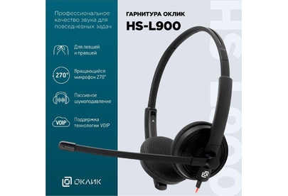 Наушники OKLICK Гарнитура HS-L900, для компьютера/мобильных устройств, накладные, проводные, черный [1532022]
