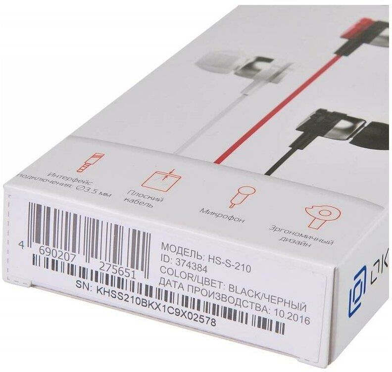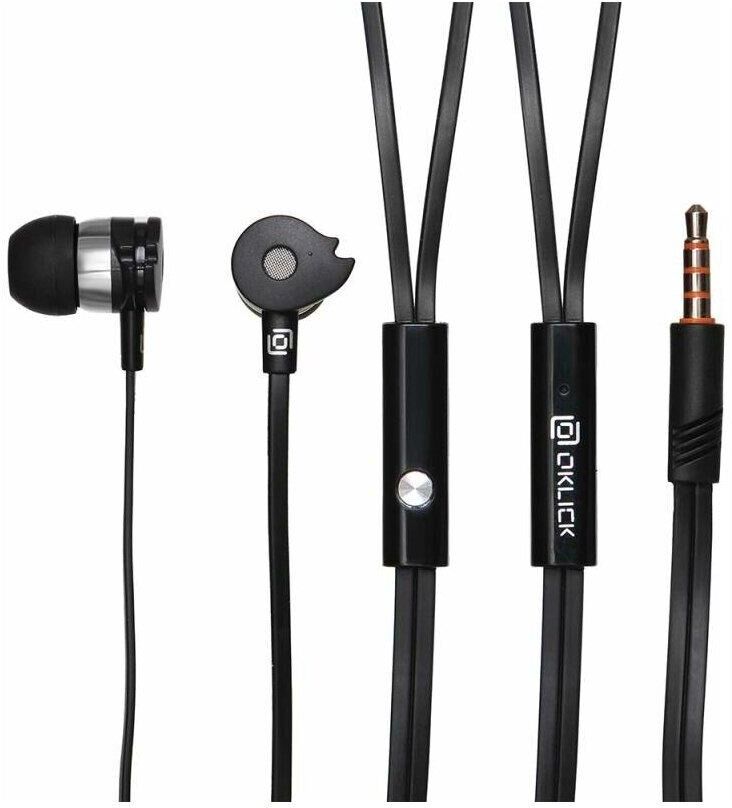 Наушники OKLICK Гарнитура вкладыши Оклик HS-S-210 1.2м черный проводные в ушной раковине (D1B)