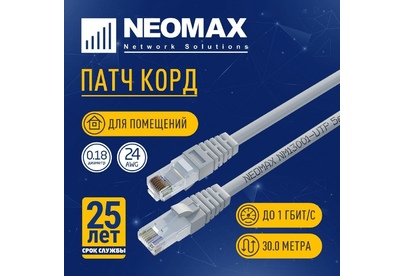 Тип товара: Кабель витая пара; Модель: NM13001-300; Тип оборудования: Патч-корд; Среда эксплуатации (Тип прокладки): Для помещений; Особенности: Для внутренней проводки; Категория: кат.5e; Экранирование: Неэкранированный кабель (U/UTP); Материал проводника: Медь; Материал оболочки: PVС (ПВХ); Стандарт оболочки: PE; Количество пар: 4; Совместимость: с литыми изолирующими колпачками; Длина кабеля, м: 30.