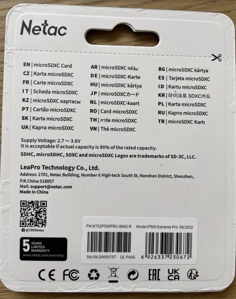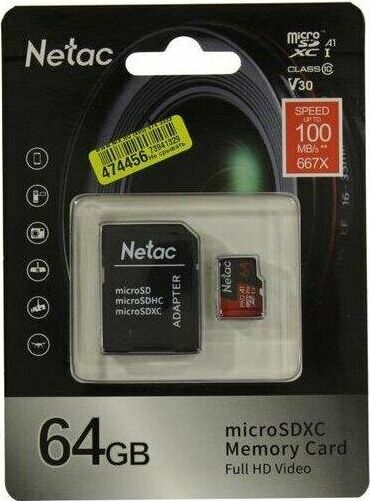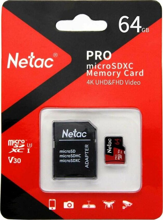 NETAC 64Gb MicroSD P500 Extreme Pro + SD adapter (NT02P500PRO-064G-R)