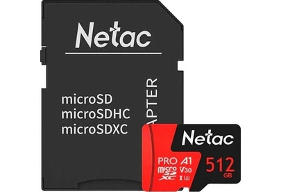 NETAC Карта памяти microSDXC UHS-I U3 P500 Extreme Pro 512 ГБ, 100 МБ/с, Class 10, NT02P500PRO-512G-