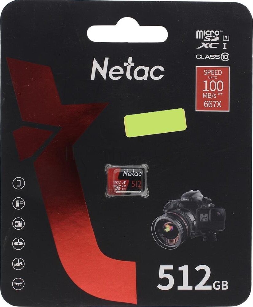 [Карта памяти ] Micro SecureDigital 512GB Netac microSDXC Class10 Netac [NT02P500PRO-512G-R] P500 Extreme Pro + adapter
