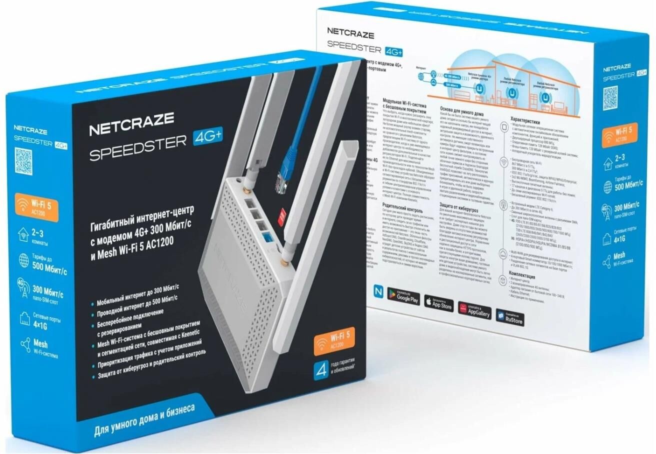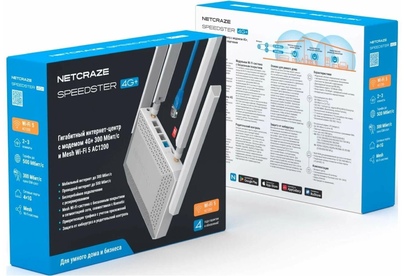 Гигабитный интернет-центр Netcraze Speedster 4G+ (NC-2911) с модемом 4G+, Mesh Wi-Fi 5 AC1200 и 4-портовым Smart-коммутатором