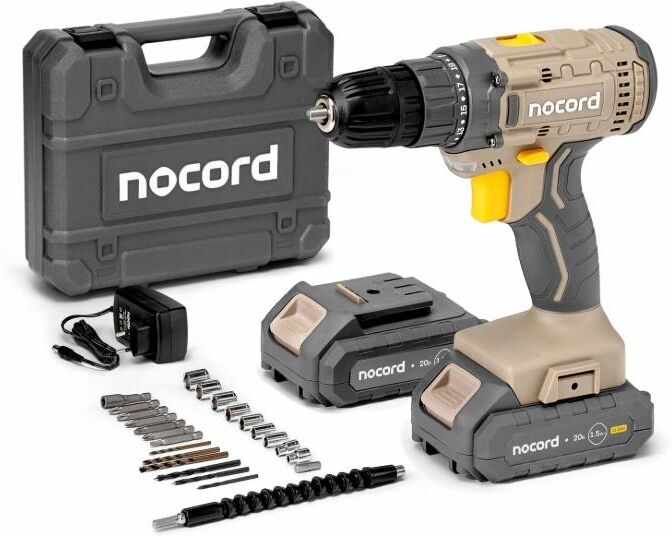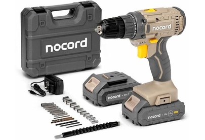 Дрель-шуруповерт Nocord NCD-20.2.15.C, аккумуляторная, 20В, 2х1.5 А·ч Li-Ion, в кейсе + 24 предмета оснастки
