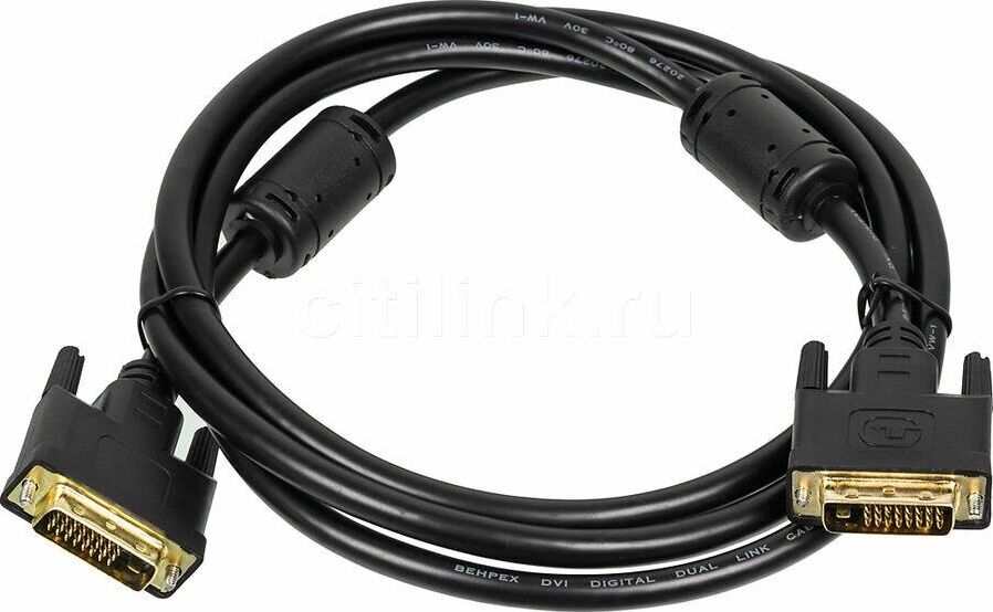 Тип: DVI. Функциональный тип: Кабель. Ферритовые фильтры: Да. Позолоченные контакты: Да. Длина товара: 1.8. Цвет: черный. Вес упаковки (ед): 0.26. Гарантия: 6 мес.. Разъём 2: DVI-D (m). Разъем 1: DVI-D (m). Разъемы: DVI-D (m) - DVI-D (m). Цвет: черный. Длина: 1.8 м. Особенности: позолоченные контакты, ферритовые фильтры