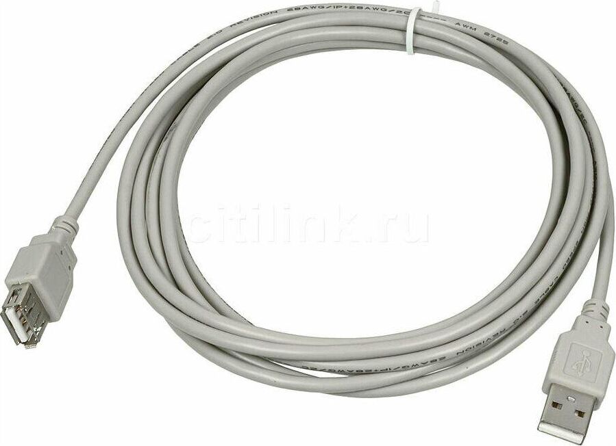 Тип: USB2.0. Функциональный тип: Кабель. Длина товара: 3. Цвет: серый. Вес упаковки (ед): 0.05. Гарантия: 6 мес.. Разъём 2: USB A(f). Разъем 1: USB A(m). Длина: 3 м. Разъемы: USB A(m) - USB A(f). Цвет: серый