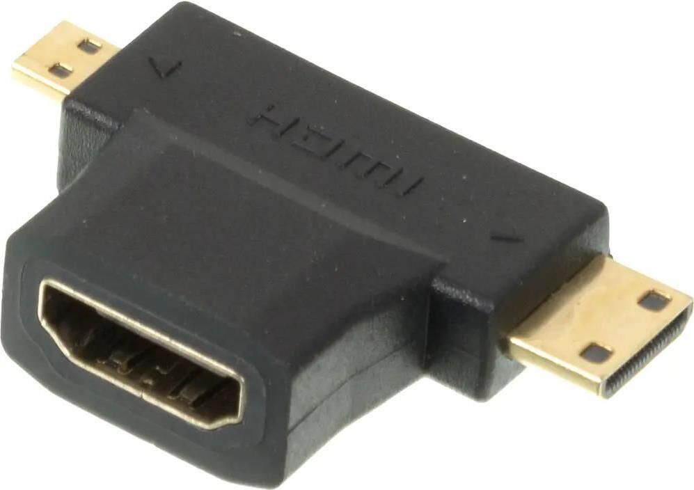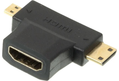 Тип: Переходник. Функциональный тип: аудио-видео. Цвет: черный. Разъем №3: Mini HDMI (m). Габариты упаковки (ед) ДхШхВ: 0.03x0.02x0.01. Вес упаковки (ед): 0.01. Гарантия: 6 мес.. Разъем 1: HDMI (f). Разъем 2: Micro HDMI (m). Разъемы: HDMI (f) - Micro HDMI (m); Mini HDMI (m)