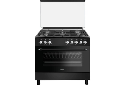 ШхГхВ: 90х60х88,5 см; 5 газовых конфорок, включая WOK-конфорку итальянского бренда SABAF; полный газ-контроль; автоподжиг; решетка: чугунная; электрическая духовка с двойной конвекцией: 110 л; 6 режимов; подсветка; гриль; отделение для хранения посуды; таймер механический с автоотключением духовки; 2 противня, 1 хромированная решетка; крышка: стекло; цвет: черный
