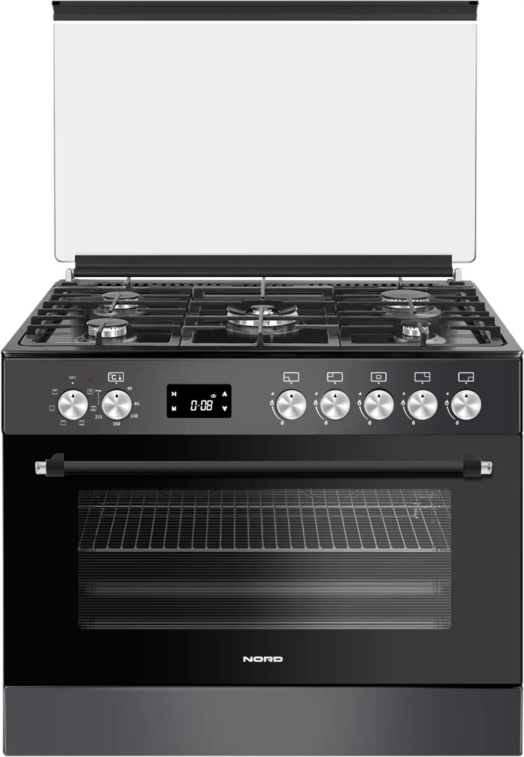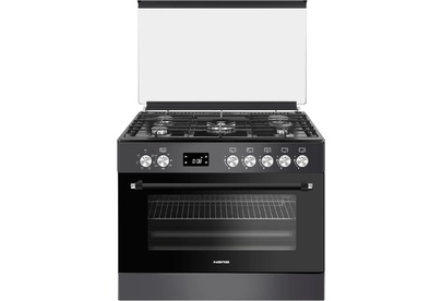 ШхГхВ: 90х60х88,5 см; 5 газовых конфорок, включая WOK-конфорку итальянского бренда SABAF; полный газ-контроль; автоподжиг; решетка: чугунная; электрическая духовка с двойной конвекцией: 110 л; 6 режимов; подсветка; электрогриль; отделение для хранения посуды; таймер с дисплеем сенсорный с автоотключением духовки; 2 противня, 1 хромированная решетка; крышка: стекло; цвет: графитовый