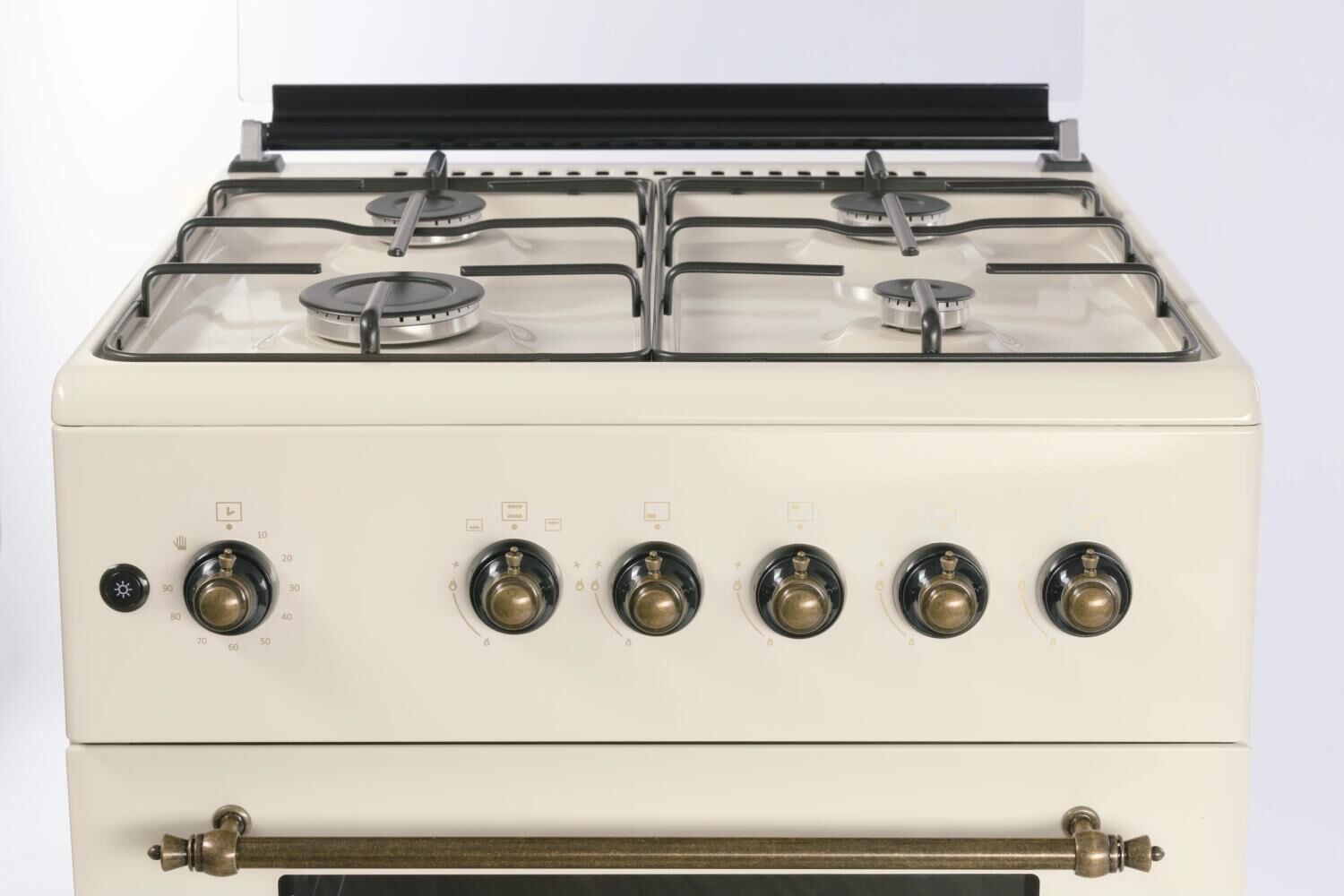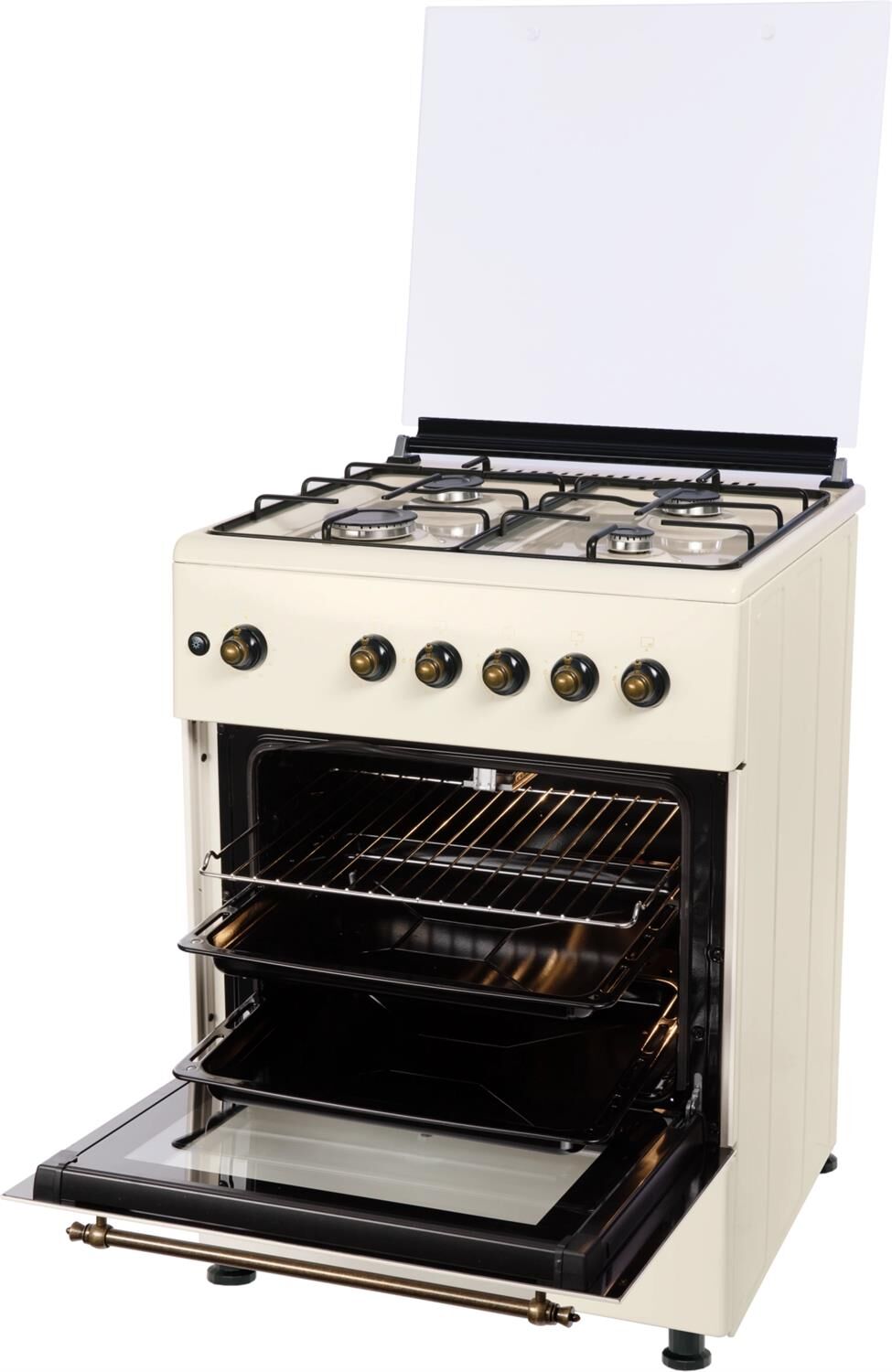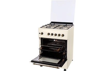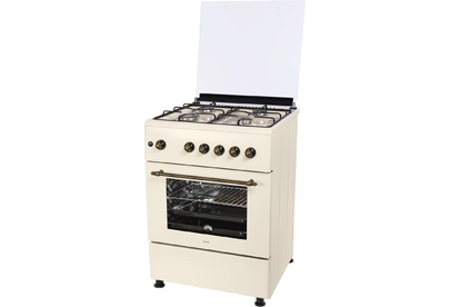 GG 6061 Y: ШхГхВ: 60х60х88,5 см; 4 газовые конфорки; автоподжиг; решетка: LAMA; газовая духовка: 63 л; 2 режима; газ-контроль горелок духовки; подсветка; гриль; механический термометр для духовки; отделение для хранения посуды; таймер механический; 1 противень, 1 хромированная решетка; крышка: стекло; цвет: бежевый