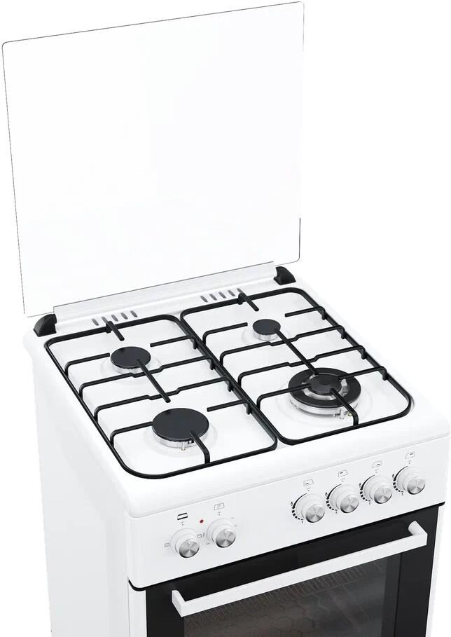 Плита отдельностоящая газовая с электрической духовкой; Габариты ШхВхГ, см: 60х80х60; Цвет: белый; Съемное внутреннее стекло (Cood Door); 4 конфорки (1 Wok комфорка) с газ контролем; Эмалированная решетка; Подсветка духовки; Верхний нижний тэн; Стеклянная верхняя крышка; Электроподжиг; 1 противень; 1 решетка; нижний ящик для посуды; Объём духовки: 64 л; В комплекте: кабель, вилка, жиклеры, штуцер, регулируемые ножки; Упаковка: пенопласт