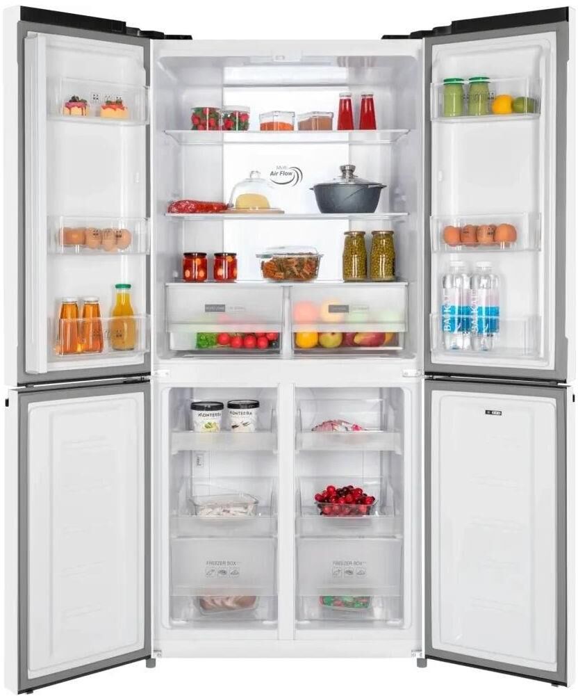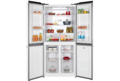 Количество камер: трехкамерный. Расположение морозильной камеры: снизу. Тип управления: электронное. Класс энергопотребления: A+. Система размораживания: No Frost. Общий объем холодильника: 470. Уровень шума: 41. Количество компрессоров: один. Хранение при отключении питания: 11. Мощность замораживания: 7. Количество полок: 3. Количество ящиков: 2. Материал полок: закаленное стекло. Зона свежести: есть. Количество полок: 4. Система размораживания: No Frost. Тип: Холодильник. Полезный объем холодильника: 427. Полезный объем холодильной камеры: 286. Полезный объем морозильной камеры: 141. Хладагент: R600a. Количество ящиков: 2. Вес (нетто): 87. Количество дверей: 4. Тип компрессора: инверторный. Вес упаковки (ед): 94. Страна производства: Китай. Инверторный компрессор: есть. Количество полок на дверце: 6. Материал дверей: металл. Наличие морозильной камеры: есть. Температура морозильной камеры max: -15. Температура морозильной камеры min: -24. Температура холодильной камеры max: 9. Температура холодильной камер