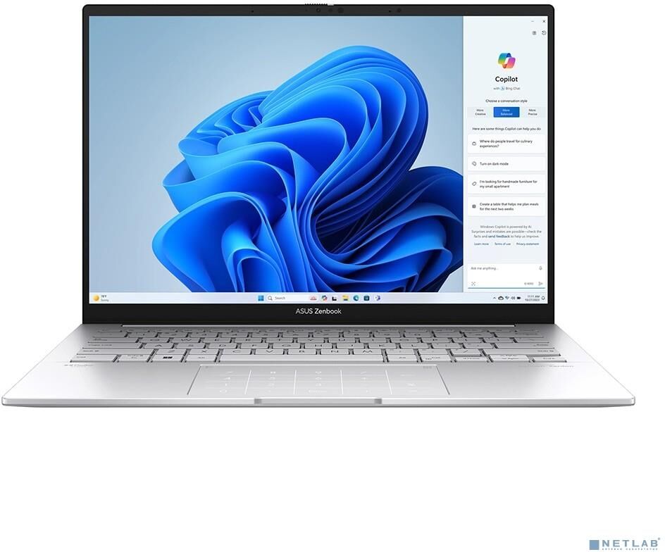 Ноутбук ASUS Zenbook UX3405CA-ST1093 [90NB14W2-M01LJ0] Silver 14" OLED 3K Ul9 285H/32Gb/SSD512Gb/140T/noOS/