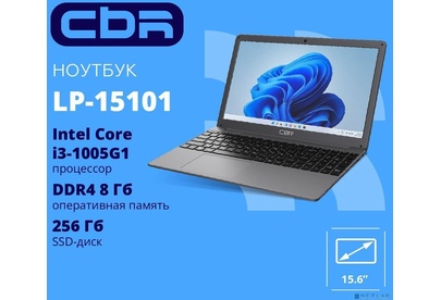 [Ноутбук] Ноутбук CBR LP-15101 15.6" (FHD IPS / i3-1005G1 (1.2GHz )/8Gb DDR4 3200MHz / 256Gb SSD M.2 SATA / Intel UHD Graphics / RJ45 / DOS / 4500 mAh / 1520g/ серый,пластик)