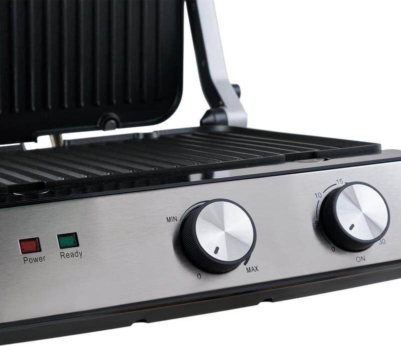 Параметры электросети, В/Гц 220-240 / 50-60 Мощность, Вт 2000 Цвет нержавеющая сталь, чёрный Материал корпуса бакелит+нержавеющая сталь Тип управления механический Настраиваемый таймер 30 мин Размер рабочей поверхности, мм 290x230 Размер изделия, мм 345x334x148 Вес, кг 4,25 Антипригарное покрытие на водной основе Режим барбекю – открытие на 180° Регулируемый термостат Функция пресса Таймер до 30 минут Съемный поддон для сока и масла Удобная ручка с защитой от нагревания Защита от перегрева