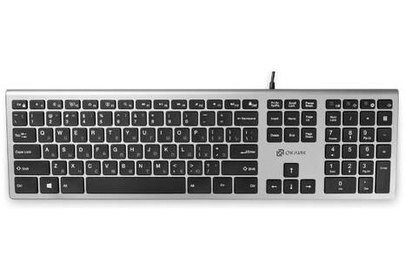 Интерфейс: USB. Мультимедийные дополнительные клавиши: есть. Обычная/тонкая: тонкая(slim). Клавиатура с русскими буквами: ДА. Особенности: Корпус - алюминий+пластик, ножничный механизм нажатия, прорезиненные антифрикционные ножки, ресурс нажатий 10 млн, мультимедийный функционал клавиш. Дизайн клавиш: квадратные. Длина кабеля: 1.6. Цвет английских букв: белый. Цвет русских букв: оранжевый. Материал корпуса: пластик. Вес: 0.49. Тип соединения: проводная. Количество клавиш: 109. Габариты упаковки (ед) ДхШхВ: 0.455x0.15x0.031. Вес упаковки (ед): 0.6. Страна производитель: Китай. Гарантия: 12 мес.. Размеры клавиатуры (ШхВхТ): 436.3 х 23 х 124.6 мм. Цвет: и черныйсеребристый. Конструктивные особенности: регулятор громкости, цифровой блок. Конструктив клавиатуры: островная. Тип соединения: проводная. Цвет английских букв: белый. Особенности: мультимедийная, тонкая(slim). Интерфейс: USB. Цвет русских букв: оранжевый
