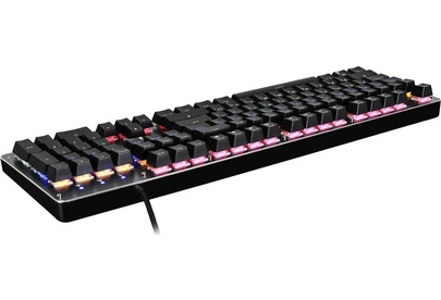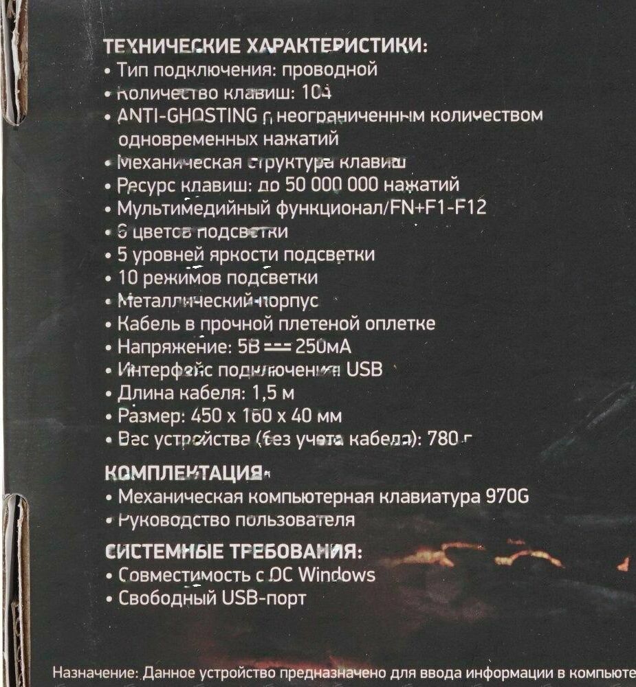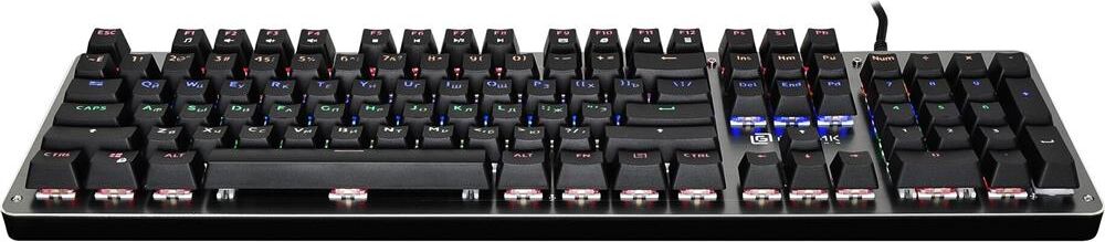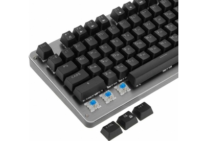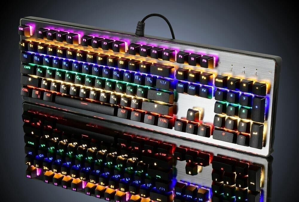 Интерфейс: USB. Мультимедийные дополнительные клавиши: есть. Для геймеров: да. Обычная/тонкая: обычная. Клавиатура с русскими буквами: да. Особенности: Anti-Ghosting неограниченное количество одновременных нажатий Ресурс клавиш до 50 000 000 нажатий Мультимедийные клавиши (FN-F1-F12) 6 цветов подсветки 5 увроней яркости кабель в прочной плетеной оплетке 10 режимов подсветки. Тип: Клавиатура. Дизайн клавиш: квадратные. Длина кабеля: 1.5. Цвет английских букв: серый. Цвет русских букв: серый. Цвет клавиш: черный. Цвет корпуса клавиатуры: черный. Материал корпуса: пластик/металл. Механическая: да. Тип соединения: проводная. Количество клавиш: 87. Тип подсветки: многоцветная. Тип механических переключателей: Blue. Габариты упаковки (ед) ДхШхВ: 0.388x0.156x0.041. Вес упаковки (ед): 0.86. Комплектация: Полную комплектацию товара уточняйте у производителя. Гарантия: 12 мес.. Размеры клавиатуры (ШхВхГ): 360 х 35 х 160 мм. Цвет: черный. Особенности клавиш: интернет-клавиши. Тип механизма клавиш: механическая. Интерфей