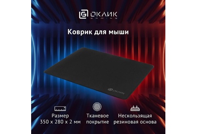 OKLICK Коврик для мыши Оклик OK-T350 Средний черный 350x280x2мм
