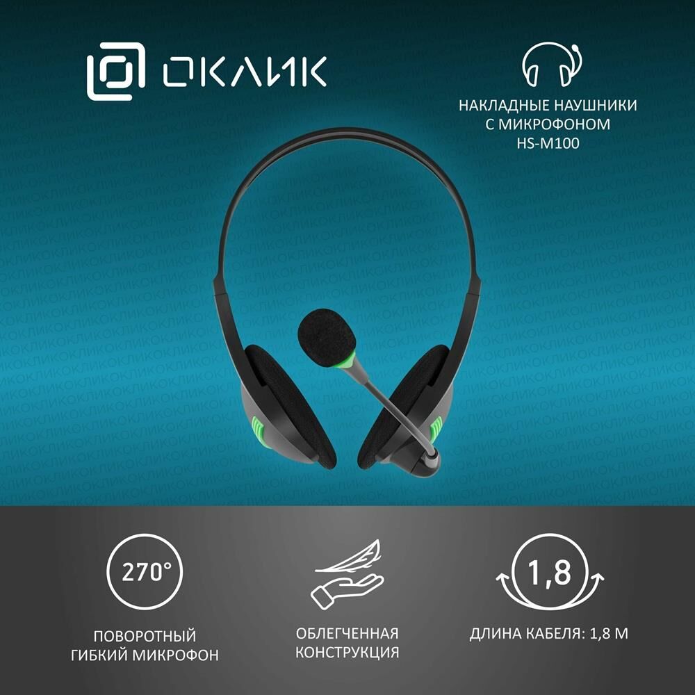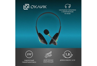 OKLICK Наушники с микрофоном Оклик HS-M100 черный 1.8м накладные оголовье (1532004)