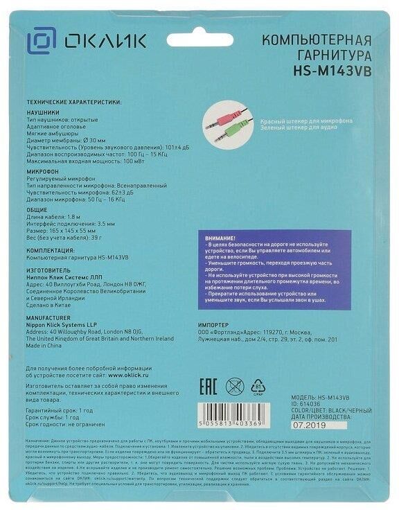 OKLICK Наушники с микрофоном Оклик HS-M143VB черный 1.8м накладные оголовье (614036)