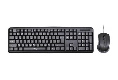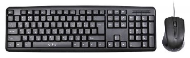 Проводной набор (клавиатура+мышь), клавиатура - количество калвиш - 104, интерфейс USB, двухцветная раскладка, длина кабеля - 1,35 м; мышь - проводная оптическая, количество кнопок - 3, разрешение 1200 dpi , цвет - черный.