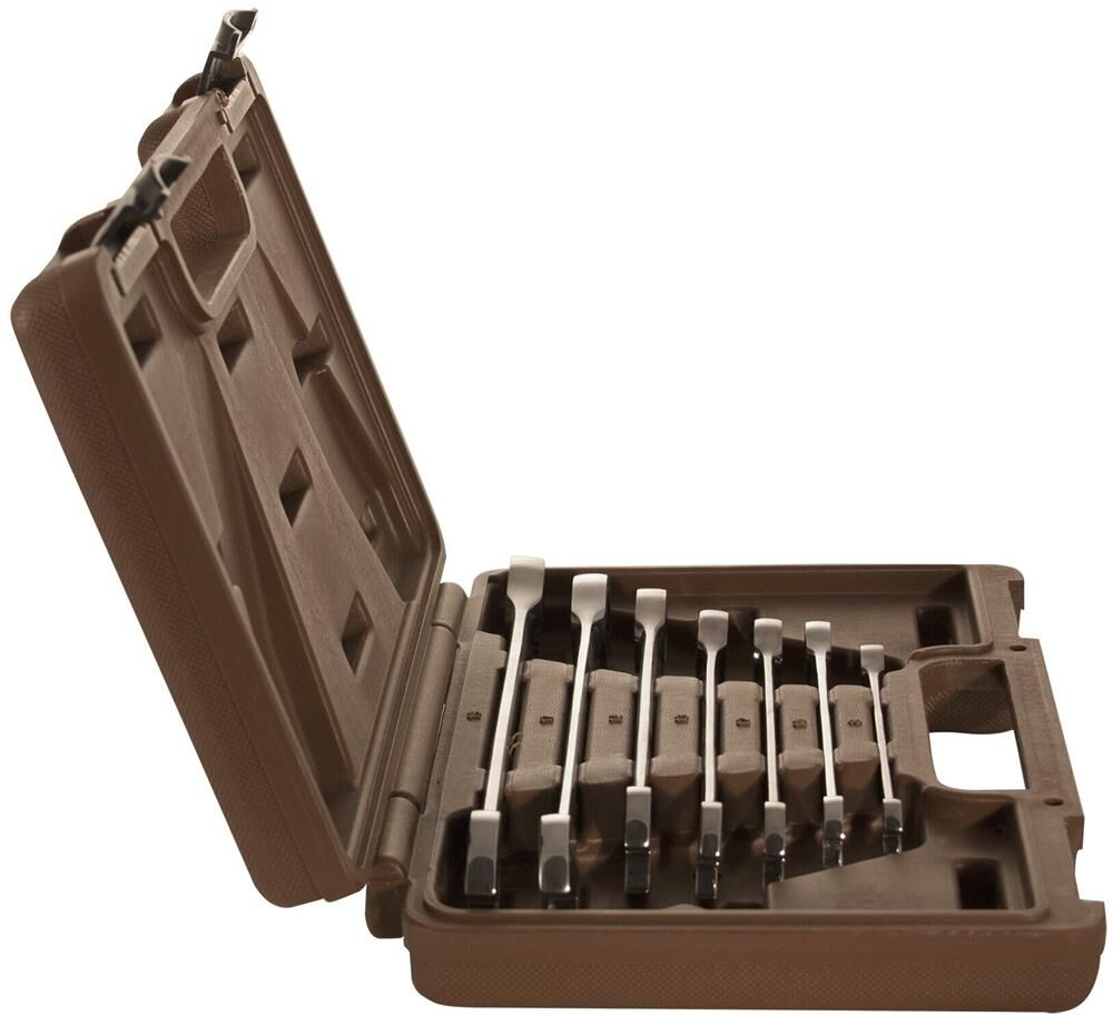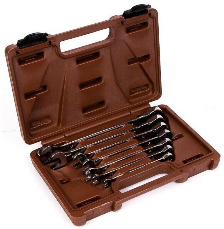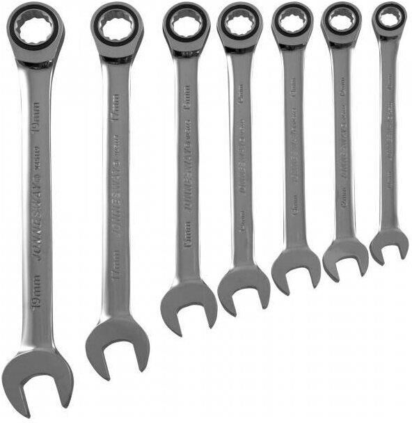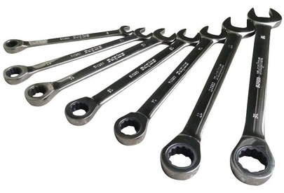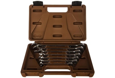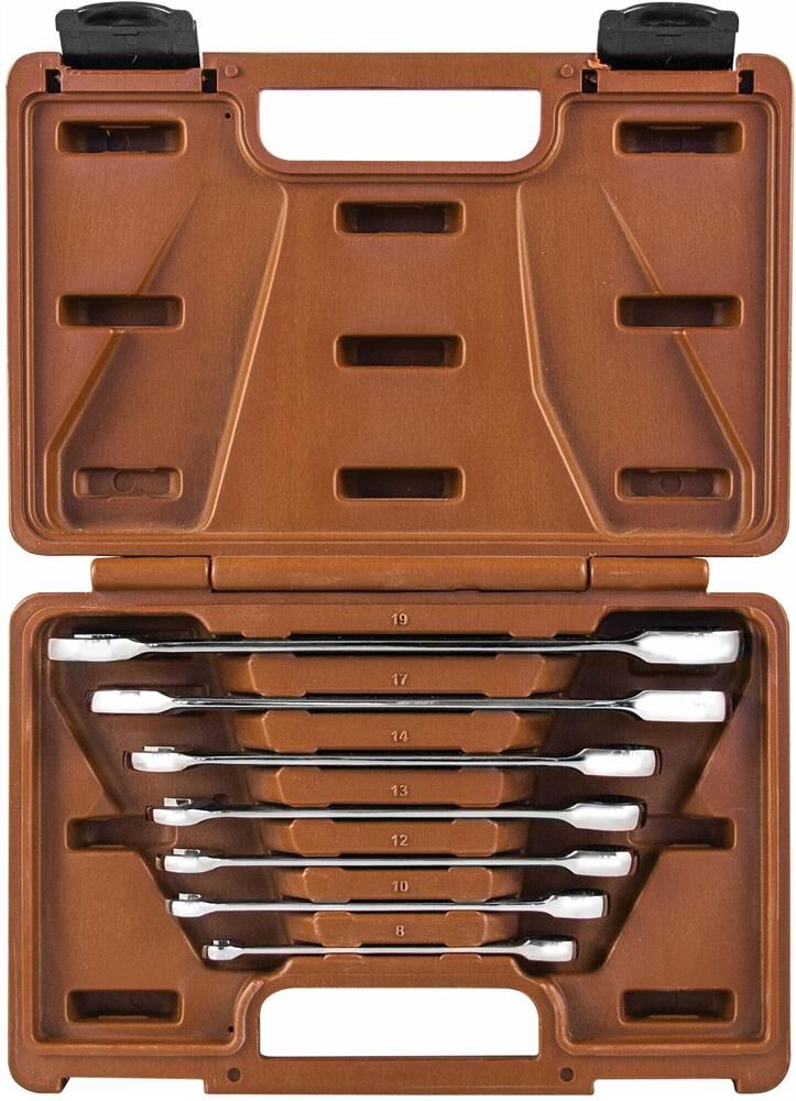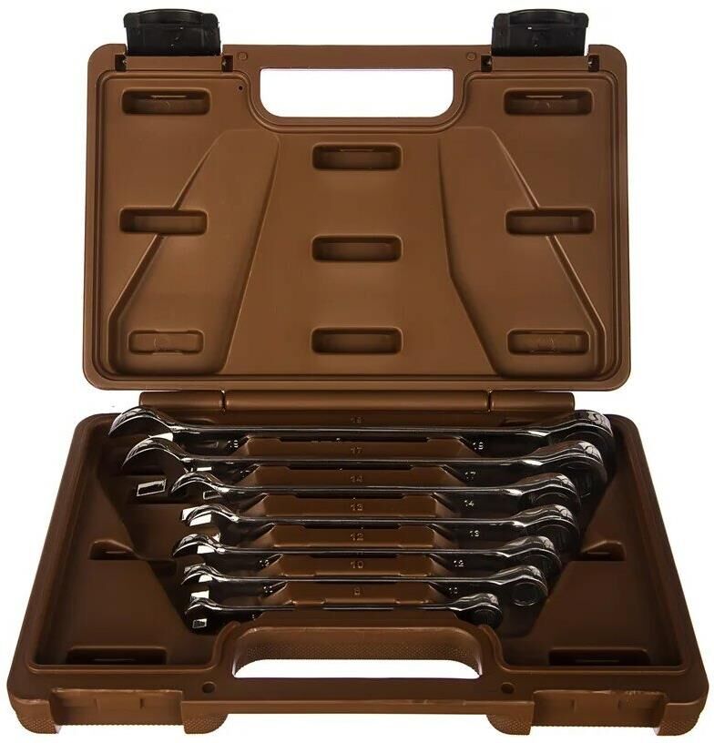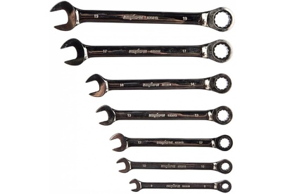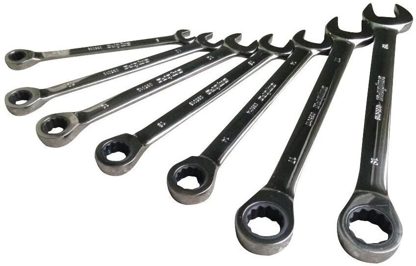 Материал: хромованадиевая высоколегированная сталь. Профессиональный инструмент: да. Тип: Набор ключей. Габариты упаковки (ед) ДхШхВ: 0.28x0.06x0.19. Вес упаковки (ед): 0.25. Трещоточный: да. Страна производства: Тайвань (Китай). Количество предметов: 7 предметов. Комбинированные ключи, список: 8, 10, 12, 13, 14, 17, 19 мм.. Максимальный размер ключа: 19. Минимальный размер ключа: 8. Гарантия: 12 мес.. Система измерения: метрическая. Форма ключа : прямой. Тип ключа: комбинированный. Количество предметов: 7 предметов. Тип ключа: комбинированный. Форма ключа: прямой. Особенности: профессиональный инструмент, трещоточный. Размер ключа: мин. - 8 мм, макс. - 19 мм