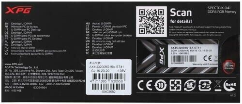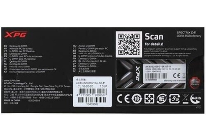Оперативная память ADATA XPG SPECTRIX D41 8GB DDR4-3200 AX4U32008G16A-ST41,CL16, 1.35V TUNGSTEN GREY