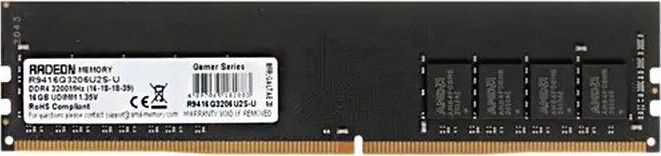 Оперативная память AMD Память DDR4 16GB 3200MHz R9S416G3206U2S R9 RTL Gaming PC4-25600 CL16 DIMM 288-pin 1.35В с радиат