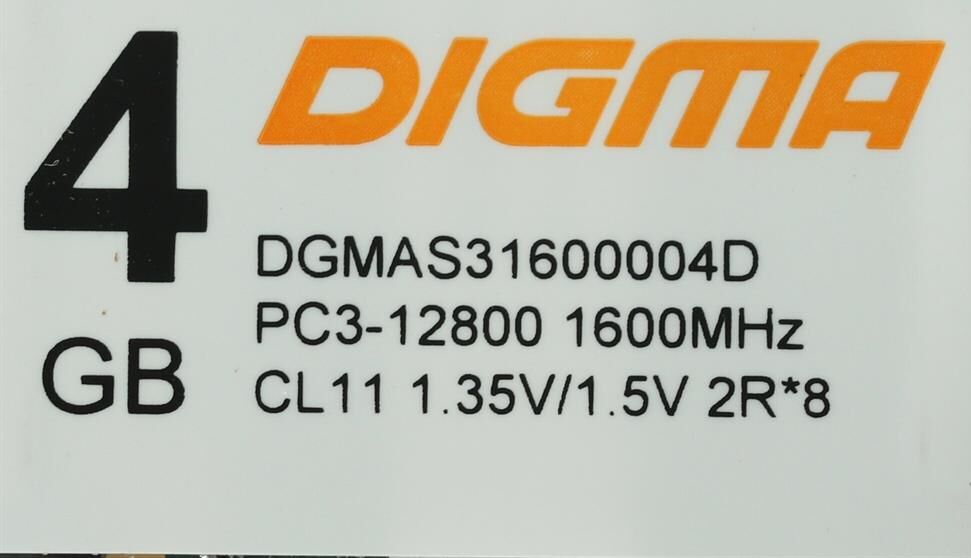 Оперативная память DIGMA Память DDR3 4GB 1600MHz DGMAS31600004D RTL PC3-12800 CL11 SO-DIMM 204-pin 1.35В dual rank Ret