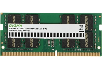Оперативная память DIGMA Память DDR4 32GB 3200MHz DGMAS43200032D RTL PC4-25600 CL22 SO-DIMM 260-pin 1.2В dual rank Ret