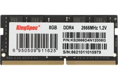 Оперативная память KINGSPEC Память DDR4 8GB 2666MHz KS2666D4N12008G RTL PC4-21300 SO-DIMM 260-pin 1.2В single rank Ret