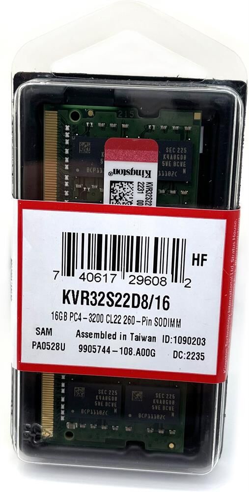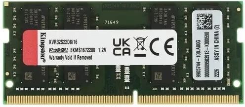 Оперативная память Kingston DDR4 SODIMM 16GB KVR32S22D8/16 PC4-25600, 3200MHz, CL22