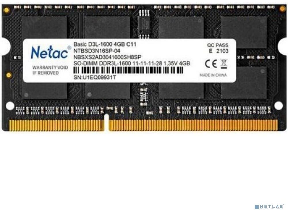 [Модуль памяти] Память SO-DIMM DDR3L 4Gb PC12800 1600MHz CL11 Netac 1.35V (NTBSD3N16SP-04)