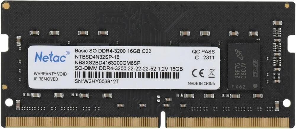 Оперативная память NETAC Память DDR4 16GB 3200MHz NTBSD4N32SP-16 Basic RTL PC4-25600 CL22 260-pin 1.2В single rank Ret