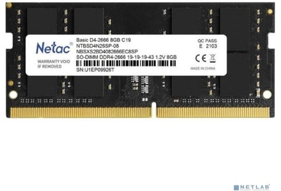 Оперативная память NETAC Память SO-DIMM DDR4 8Gb PC21300 2666MHz CL19 1.2V (NTBSD4N26SP-08)