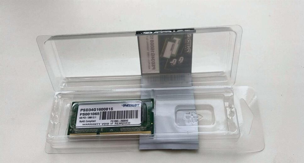 Оперативная память PATRIOT Память DDR3 4GB 1600MHz PSD34G160081S RTL PC3-12800 CL11 SO-DIMM 204-pin 1.5В single rank Re