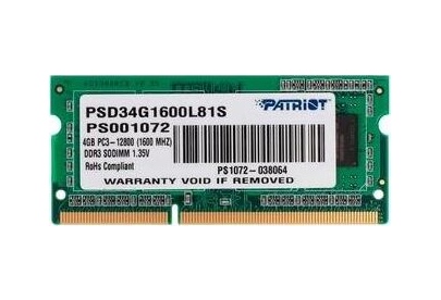 Оперативная память PATRIOT Память DDR3L 4GB 1600MHz PSD34G1600L81S RTL PC3-12800 CL11 SO-DIMM 204-pin 1.35В single rank