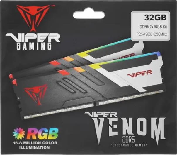 Оперативная память PATRIOT Память DDR5 2x16GB 7200MHz PVVR532G720C34K Viper Venom RGB RTL Gaming PC5-57600 CL34 DIMM 28