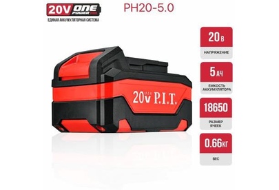 P.I.T. Аккумулятор OnePower PH20-5.0 (20В, 5Ач, Li-Ion, индикация заряда, плата, 5контактов)