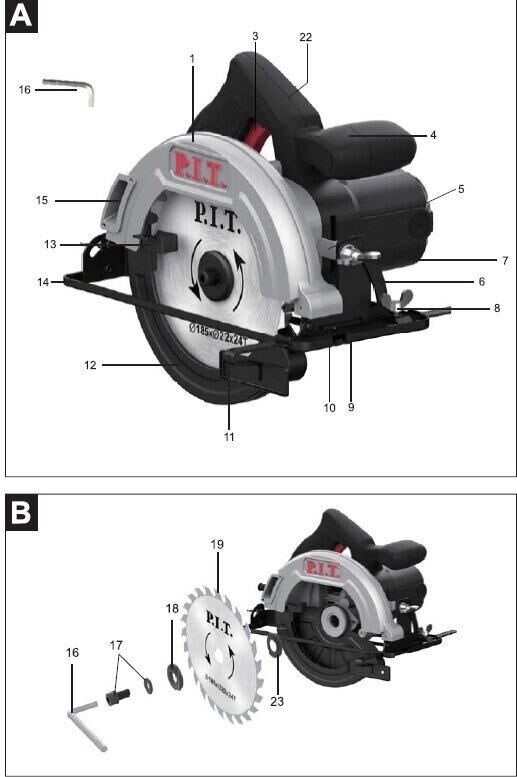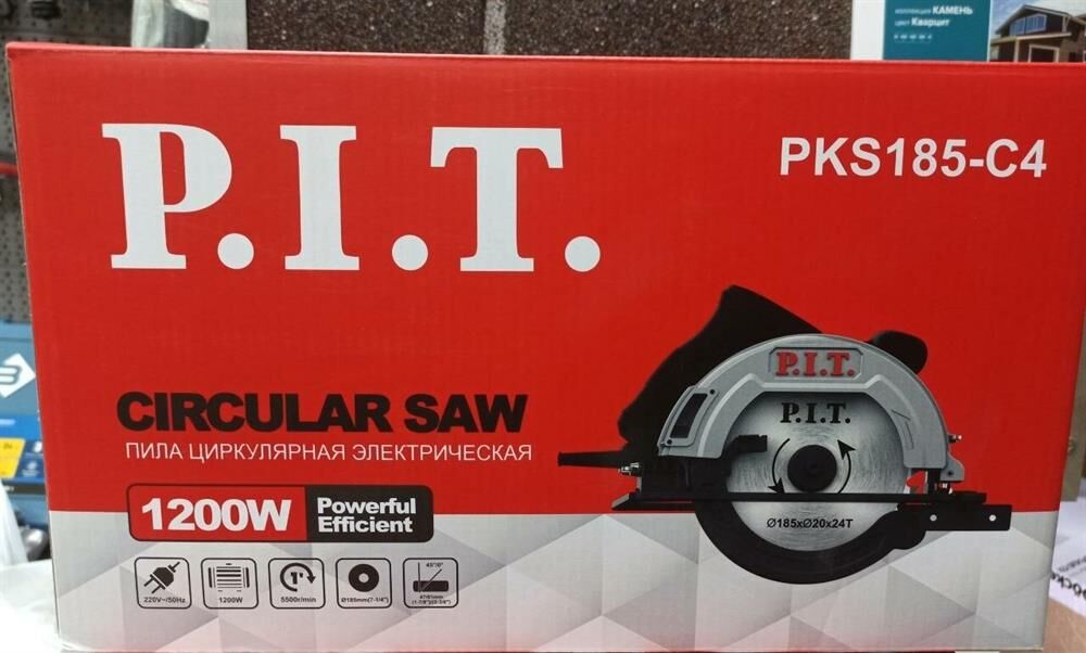 P.I.T. Циркулярная пила (дисковая) PKS185-C4 1200Вт (ручная) D диска.:185мм