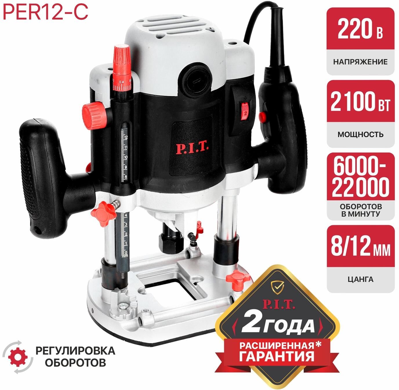 P.I.T. Фрезер погружной электрич. PER12-C МАСТЕР (2100Вт, 6000-22000об/мин, ход 55мм, цанги 8/12мм)