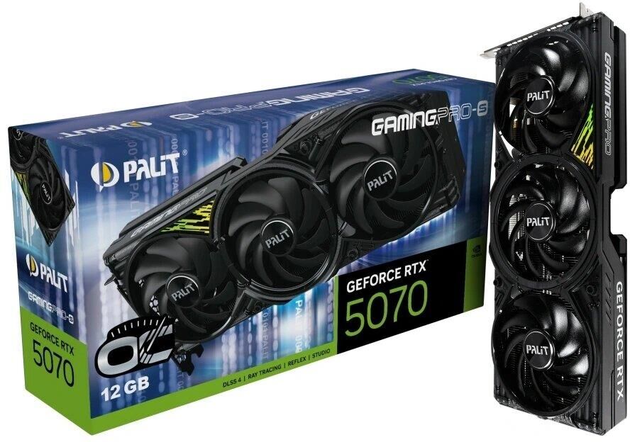 **Видеокарта Palit RTX5070 GAMINGPRO-S OC 12GB GDDR7** — это мощное устройство для тех, кто ценит высокое качество графики и производительность в играх. **Основные характеристики:** * Модель графического процессора: RTX 5070. * Объём видеопамяти: 12 ГБ. * Разрядность шины видеопамяти: 192 бит. * Тип видеопамяти: GDDR7. * Максимальное разрешение: 7680x4320. * Заводской разгон (Overclocking): да. **Преимущества:** * **Три вентилятора** обеспечивают эффективное охлаждение, что позволяет видеокарте работать на высокой производительности без перегрева. * **Активное охлаждение** способствует стабильной работе устройства. * **Поддержка трёх мониторов через DisplayPort и одного через HDMI** даёт возможность расширить рабочее пространство и получить более полное погружение в игровой процесс. * **Подсветка** придаёт стильный вид и атмосферу игровому компьютеру. **Совместимость и подключение:** * Разъёмы дополнительного питания: 16(12+4)pin. * Длина видеокарты (PCB): 331,9 мм. * Количество занимаемых слотов: 3. Видеокар