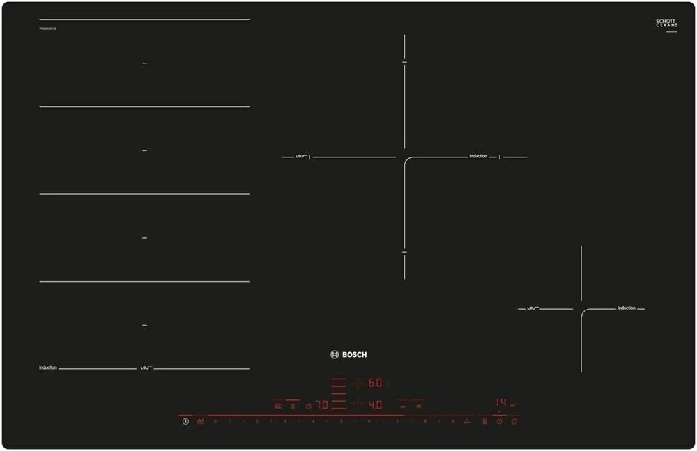 Панель варочная электрическая BOSCH Индукционная варочная поверхность PXE801DC1E, конфорок: 4 шт., стеклокерамика, независимая, че
