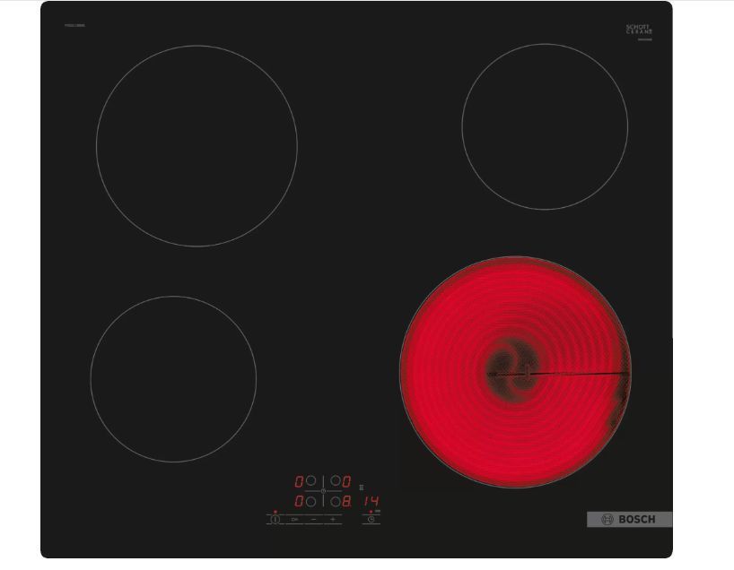 (ВхШхГ)4,5 x 59,2 x 52,2см.Варочная панель Bosch PKE611BB2E (HiLight на 4 конфорки, cтеклокерамика, мощность: 6600 Вт, независимая установка) Минимальная толщина столешницы: 16 мм.TouchControl +/- (EntryTouch). 17 ступеней мощности: точная регулировка уровней мощности с помощью 17 уровней.
