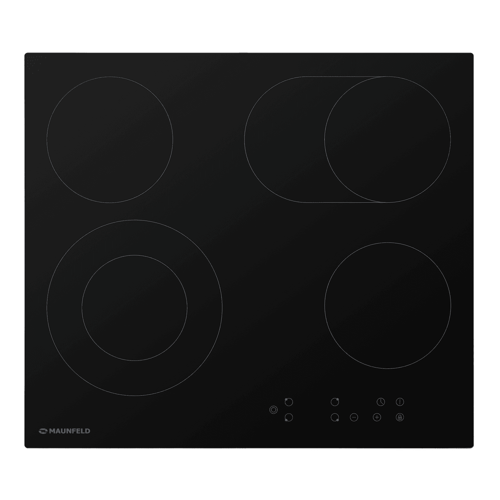 Электрическая варочная панель Maunfeld EVCE.594.SM. D-BK оборудована четырьмя конфорками и позволяет одновременно готовить несколько блюд. Модель выполнена в черном цвете и отличается хорошей функциональностью и удобством в повседневной эксплуатации. Материал — стеклокерамика — устойчива к высоким температурам и химическим моющим средствам. Индикатор остаточного тепла будет долго светиться после того, как ы закончили приготовление, поэтому ы точно не обожжетесь. По истечении установленного времени таймер приостанавливает счет и отключает конфорку. Блокировка панели управления для защиты от детей позволяет зафиксировать выбранные настройки до окончания рабочего цикла. Она активируется и деактивируется последовательностью манипуляций с элементами панели управления, которую почти невозможно повторить случайным образом. Расположенная спереди сенсорная панель позволяет легко выбирать нужные параметры прикосновением. Сенсорное управление — это надежность, т.к. сенсорные панели укрывают элект